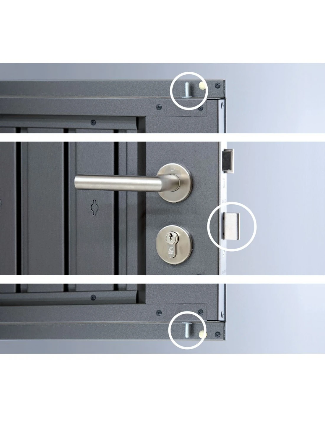 - 1 porte de 76 cm de passage x 1.82 m de haut avec seuil extra plat. La porte peut se mettre sur l’un des 4 côtés