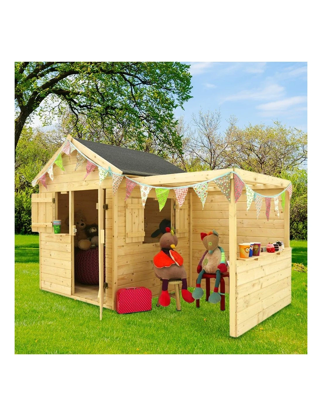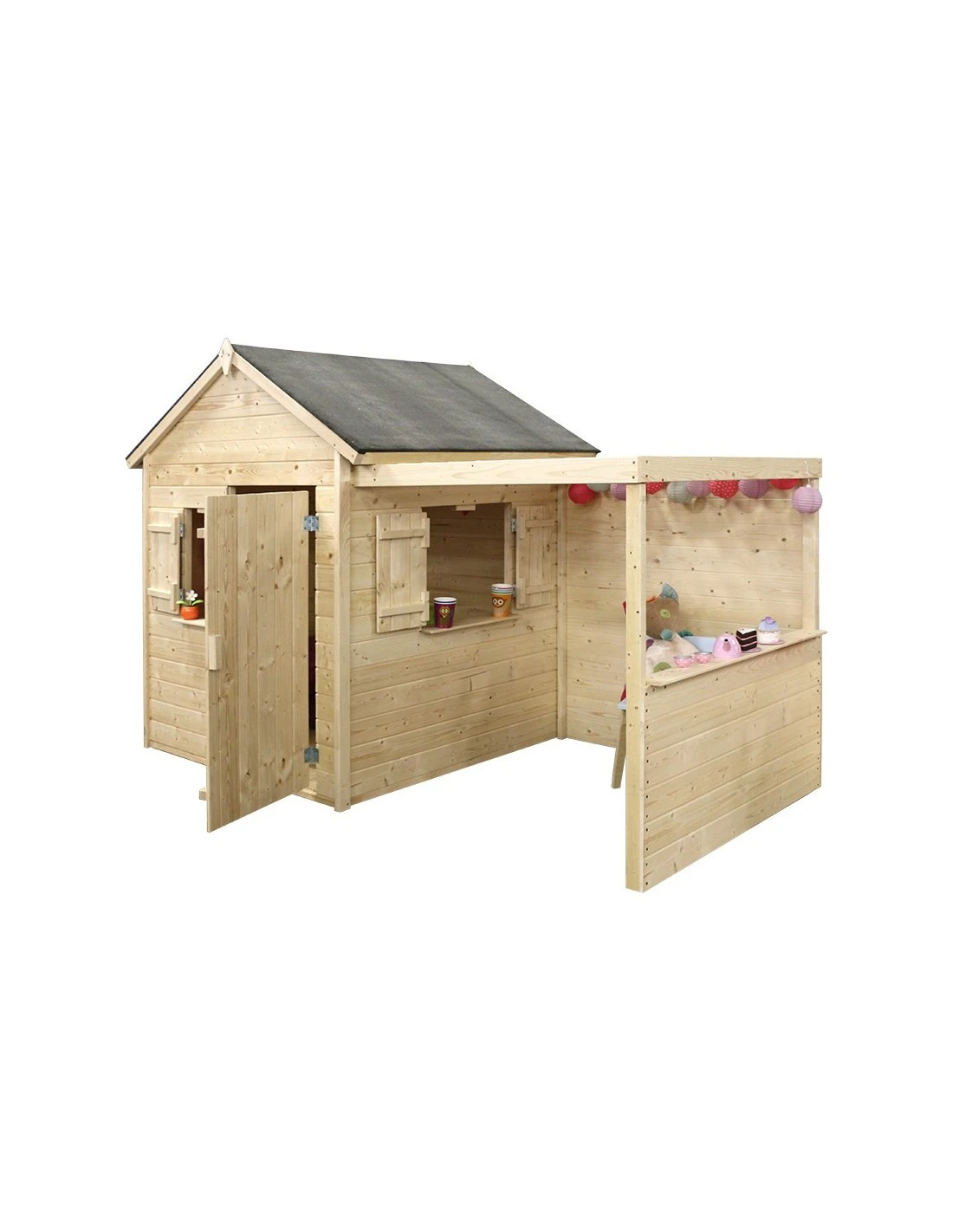 Cabane pour enfants en bois 100% naturel avec plancher et auvent
